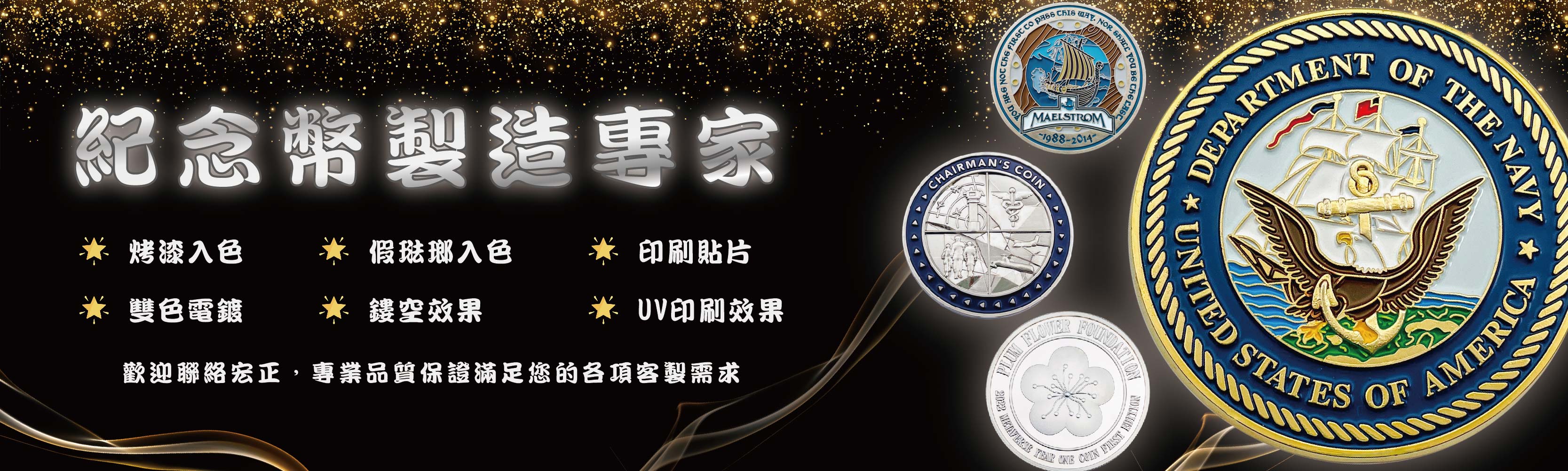 宏正為一專業紀念幣製作工廠,各式金屬紀念幣、活動紀念幣、事件紀念幣、景物紀念幣、軍事紀念幣、人物紀念幣、3D紀念幣、紀念帶幣、鏡面紀念幣客製等...