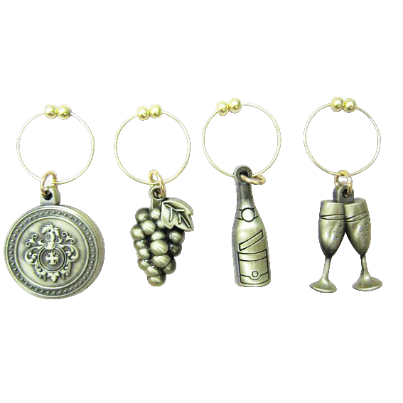 酒杯吊飾材質應用:銅質或不銹鐵材質可以印刷加波麗或直接客製化各式金屬吊飾材質。